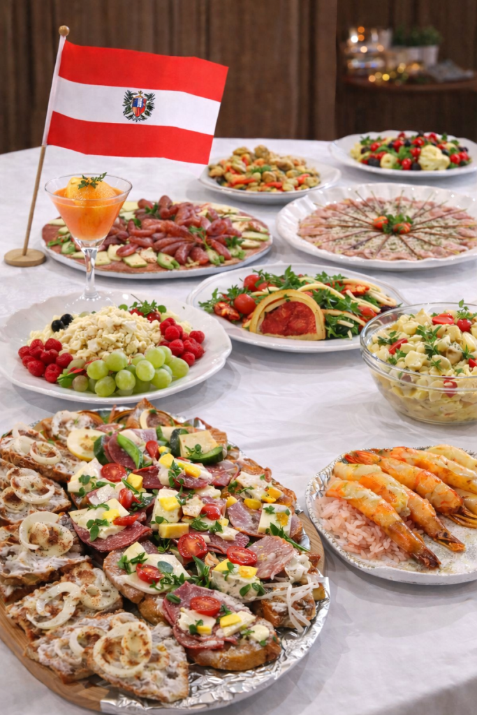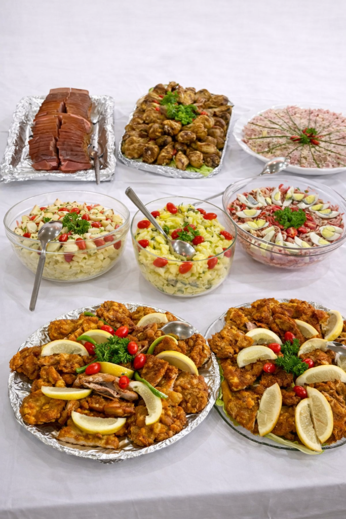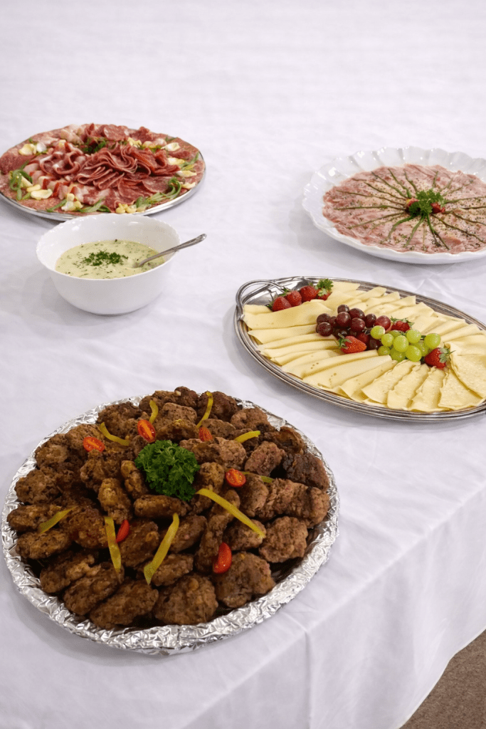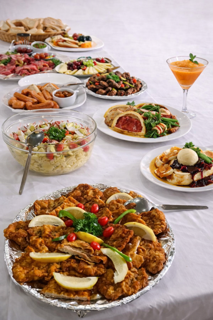 Our Austrian buffet catering service offers complete flexibility and caters for up to 100 guests. The menu is fully customised and chosen by the client, allowing you to design a dining experience that perfectly suits your event, taste, and budget.