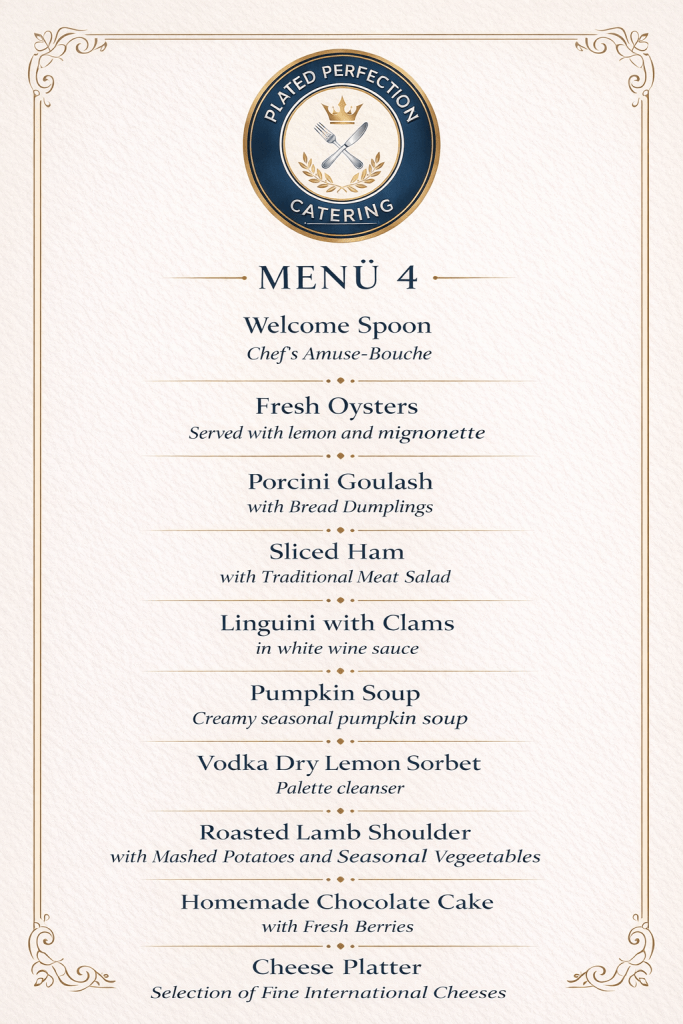 Our menus feature carefully curated multi-course dining experiences inspired by Austrian and European cuisine, designed for intimate gatherings of 4 to 10 guests.